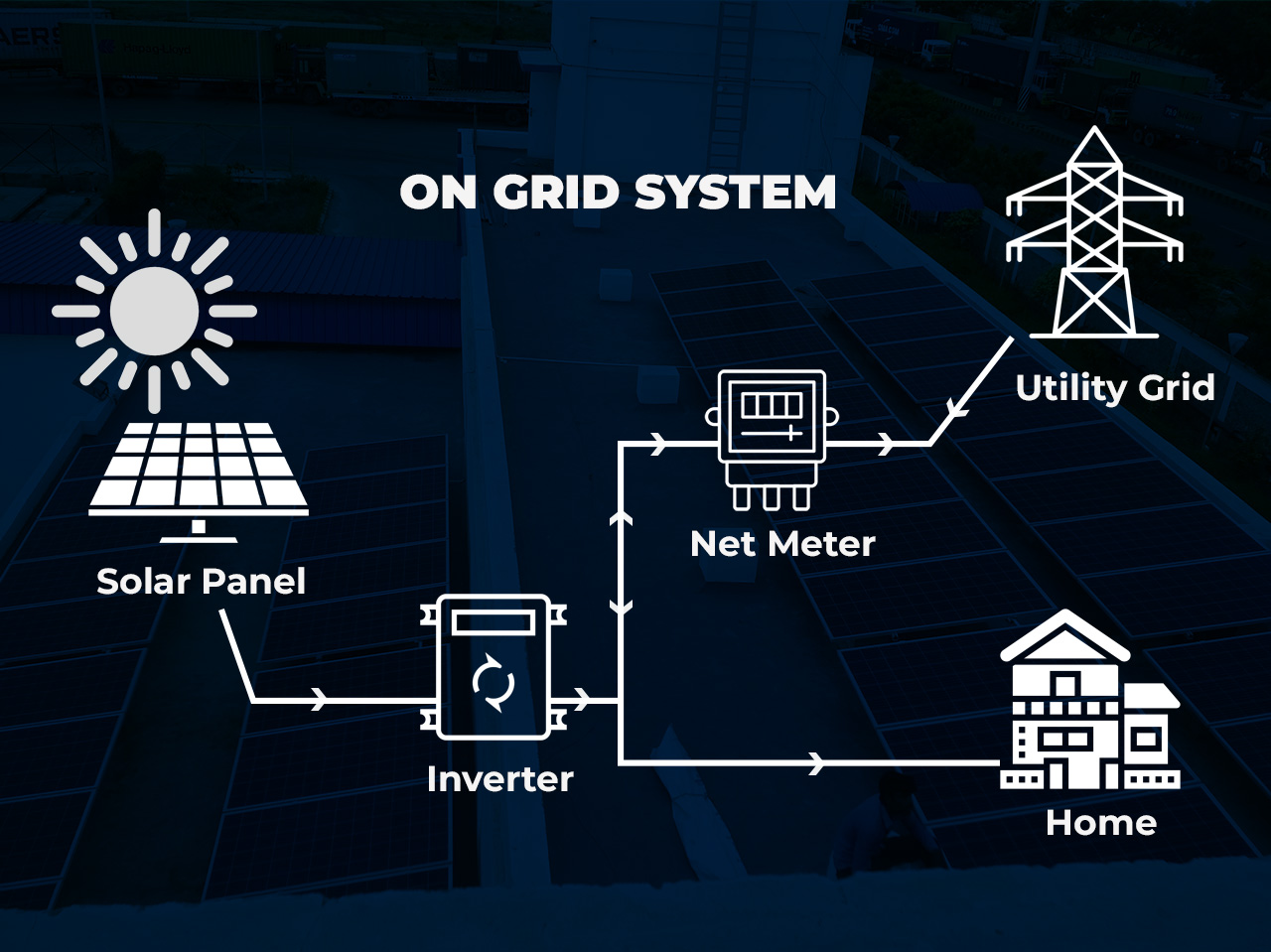 On-grid solar systems are connected to the electrical grid and include solar panels and an inverter. Excess electricity is sent back to the grid, while power is drawn when needed. Net metering measures imported & exported electricity, saving costs. On-grid solar is a sustainable and efficient way to generate electricity while remaining connected to the grid.