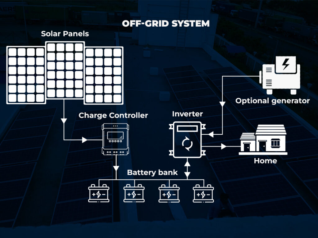 Off-grid solar refers to a solar power system that operates independently of the electrical grid. It is designed to provide electricity in remote locations or areas where grid connections are not available or practical. Off-grid solar systems typically include solar panels, batteries for energy storage, charge controllers, and inverters.
